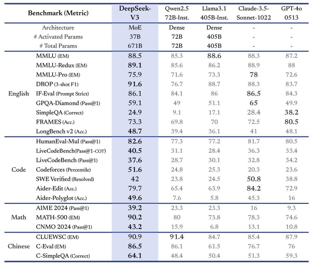 En términos prácticos, esto significa que DeepSeek V3 ofrece las capacidades de un modelo masivo con un costo computacional similar al de modelos más pequeños, beneficiando tanto la velocidad de respuesta como el uso de recursos.